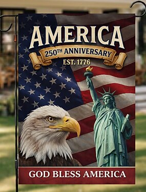 Gartenflagge zum 250. Jahrestag der USA, patriotische Flagge (1776–2026) mit Adler, Freiheitsglocke und Freiheitsstatue, rot-blau, Gartendekoration