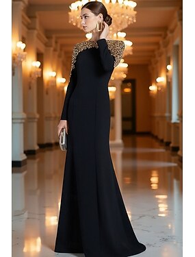 Schaft Säule bodenlang formelles Kleid Abendkleid Abendkleid elegant vintage Langarm Rundhalsausschnitt Abendparty Hochzeit mit Kristallen Perlen