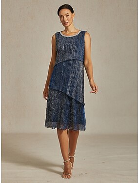 Damen Midikleid Shiftkleid Faltenkleid Halterkleid Elegant Party Formell Party Hochzeitsgast Cocktailparty Normale Passform Einfarbig Ärmellos Rundhalsausschnitt Marineblau Sommer Frühling Herbst
