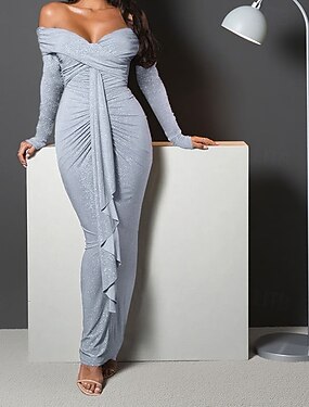 Damen Langes Kleid Maxikleid Paillettenkleid Cocktailkleid Etui-Kleid Mode Sexy Modern Party Besonderer Anlass Abendgesellschaft Normale Passform Einfach Langarm Schulterfrei Blau Frühling Herbst