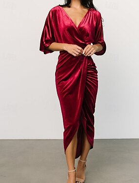 Damen Midikleid Weihnachtskleid Samtkleid Partykleid Cocktailkleid Mode Modern Party Abendgesellschaft Normale Passform Einfach Halbarm V Ausschnitt Schwarz Wein Dunkelgrün Kamel Herbst Winter