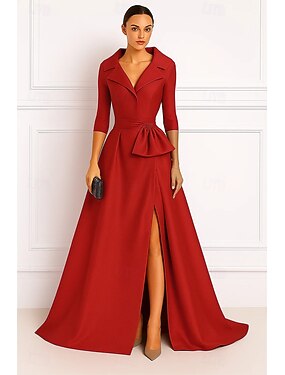 A-Linie Bodenlang Abendkleid Ballkleid Festliche Kleidung Elegant Farbblock seidig Dreiviertelarm V Ausschnitt Formell Weihnachten Tasche Satin mit Schlitz