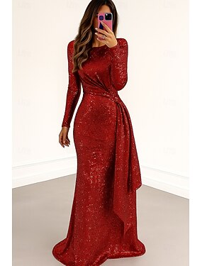Schlauchkleid Bodenlang Abiballkleider Abendkleid Ballkleid Festliche Kleidung Elegant Glitzern Langarm Rundhalsausschnitt Formell Hochzeit Paillettenbesetzt mit Glitzer Falten