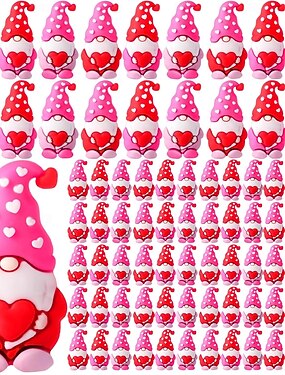 30 Stück Mini-Gnome-Figuren zum Valentinstag, winzige Gnome-Figuren als Geschenk, kleine Gnome zum Verstecken, Gummi-Gnome-Statuen für die Valentinsparty (3 Farben)