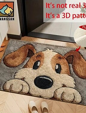 Fußmatte mit Cartoon-Motiv aus Kunstfell, strapazierfähig, für den Eingangsbereich, 2D-Flachdruck, schnelltrocknend, saugfähig, pflegeleicht, rutschfest, für Bad und Zuhause
