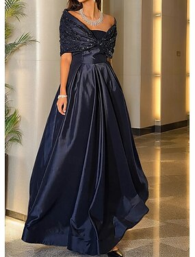 Schlauchkleid Bodenlang Perlenbestickt Abendkleid Kleid der Brautmutter Abendkleid Ballkleid mit Überrock Festliche Kleidung Elegant Glitzernd Glitzern Ärmellos Ein-Schulter Hochzeit Formell Capes