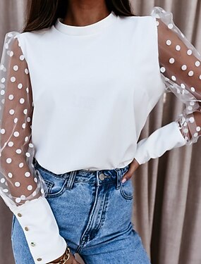 Damen Oberteil mit Spitzenspleiß Bluse Chiffon Tops Einfach Elegant Stilvoll Lässig Langarm Bischofsärmel Hoher Ausschnitt Normale Oberteile Täglich Ferien Ausgehen Spitze Gerafft Patchwork Schwarz