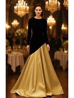 A-Linie Bodenlang Abendkleid Ballkleid Festliche Kleidung Elegant Langarm Rundhalsausschnitt Formell Hochzeit Tasche Paillettenbesetzt Samt mit Kristalle Perlenstickerei