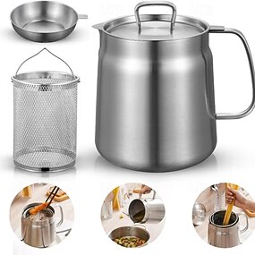 Großer Ölfiltertopf aus Edelstahl 304 mit Frittierkorb – multifunktionales Küchenutensil für effiziente Ölfiltration, ergonomischer Griff und Ausgießer, ideal für die heimische Küche