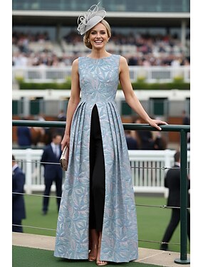 A-Linie Bodenlang Kleid für Hochzeitsgäste Derby-Kleid Brautmutterkleid Ärmellos Rundhalsausschnitt Elegant Kentucky Derby Satin Leinen Baumwoll Mischung mit Blumenmuster Falten