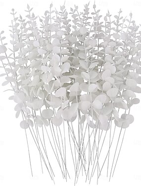 24 künstliche weiße Eukalyptuszweige mit Blättern, 38 cm lang, für Brautsträuße und als Dekoration für Zuhause