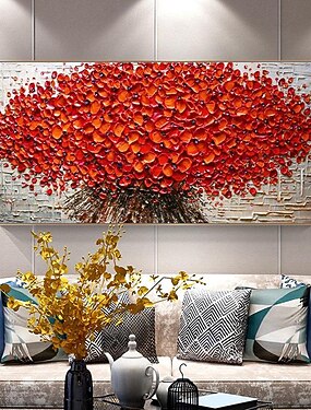handgemaltes 3D-Gemälde mit strukturierter roter Blume, handgefertigtes Gemälde mit roten Blumen, 3D-Ölgemälde mit strukturierter roter Blume, Wandkunst, impressionistisches Gemälde auf Leinwand für