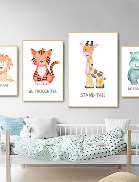 Wandkunst Leinwanddrucke Malerei Kunstwerk Bild Cartoon Kindergarten Tier Heimtextilien Dekor gerollte Leinwand kein Rahmen ungerahmt ungedehnt