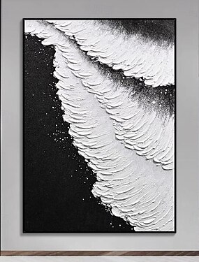 handgemaltes schwarz-weißes abstraktes Leinwandgemälde, handgefertigtes schwarz-weißes Texturwellengemälde, schwarz-weiße Bilder, Wanddekoration, schwarz-weiße abstrakte Kunst, zeitgenössische