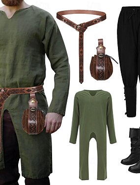 Mittelalterlich Renaissance 17. Jahrhundert Hose Stiefel Taillengürtel Krieger Wikinger Ranger Elfen Bogenschießen Kostüm Herren Vikinger Fantasie Halloween Karneval Maskerade LARP Erwachsene Hemd