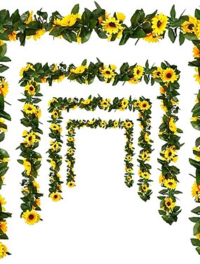LED 2,4 m künstliche Sonnenblumengirlande aus Seide, Kunstblumen, Efeublätter, Pflanzen, Heimdekoration, Blumenwandkranz, 240 cm/98 Zoll, Kunstblumen für Hochzeitsbogen, Gartenwand,