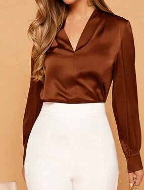 Damen Hemd Elegant Satin-Top Bluse Gerafft Einfach Elegant Vintage Stilvoll Langarm V Ausschnitt Normale Oberteile Täglich Ferien Ausgehen Blau Schwarz Wein Armeegrün Braun Sommer Frühling Herbst