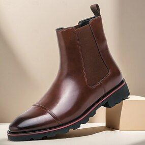 Braune Chelsea-Stiefel aus Kunstleder für Herren – klassische Slip-On-Stiefeletten mit runder Spitze und bequemer Sohle, stilvolle Abendschuhe für Arbeit, Business und formelle Anlässe