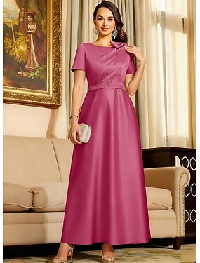 Overalls Bodenlang Kurzarm Rundhalsausschnitt Elegant Einfach Formell Hochzeitsgast Stretchstoff Brautmutterkleid mit Einfarbig