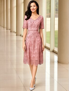 A-Linie Kleid Tee-Länge Partykleid Cocktailkleid Kurzarm V Ausschnitt Elegant Vintage Party Hochzeitsgast Geschnürte Spitze Brautmutterkleid mit Spitze Paillette