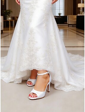 Weiße Damen-Stiletto-Sandalen mit Knöchelriemen und Spitze – offene Brautschuhe für Trauung, Empfang und Tanz
