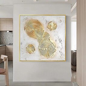 Ölgemälde handgemalt Boho Wandkunst Gold Kreis Gemälde auf Leinwand Silber abstrakte Malerei Original Blattgold Struktur Kunst Gemälde große Wandkunst Gemälde für Wohnzimmer Kunstwerk
