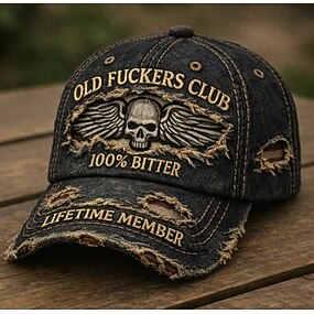 Lustige Retro-Mütze mit Stickerei, Vintage-Baseballkappe mit Totenkopf- und Flügelmotiv im Used-Look, verstellbar, witzige Grafikmütze für Herren, Outdoor- und Streetwear