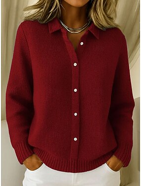 Damen Pullover Strickjacke Elegant Lässig Weich Einfarbig Gerippt Umlegekragen Hemdkragen Gestrickt Langarm Normale Oberteile Stricken Täglich Outdoor Wochenende Blau Rosa Herbst Winter
