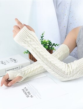 Lange Winter-Strickarmlinge für Damen, fingerlose Acrylhandschuhe, warme Strickmode ohne Finger für Herbst und Winter, lange Armwärmer
