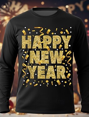 Neujahr Herren glückliches neues Jahr Feuerwerk T Shirt Langarm T-Shirt 3D-Druck Rundhalsausschnitt Hemd Übertrieben Designer Künstlerisch Club Party Straße Blau Schwarz Rote Herbst Winter Bekleidung