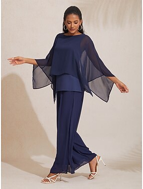 Damen Fließende Oberteile Chiffon Tops Einfarbig Elegant Dreiviertelarm Asymmetrisch Crop Tops Hochzeitsgast Marineblau Sommer Frühling Herbst