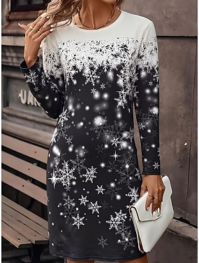 Weihnachten Damen Minikleid Etui-Kleid Urlaub Lässig Ferien Normale Passform Grafik Schneeflocke Langarm Rundhalsausschnitt Blau Schwarz Rote Purpur Herbst Winter