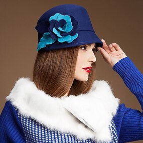 Hüte aus 100 % Wolle, Bowler-/Cloche-Hut, Fischerhut, Fedora-Hut, eleganter Hut für festliche Teepartys, Damenhut mit Blumenschmuck