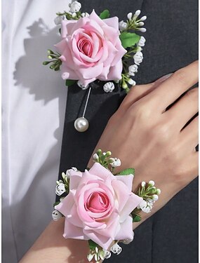 Set aus Ansteckblume und Corsage für Brautjungfern und Trauzeugen, erhältlich in verschiedenen Farben, aus Polyester, perfekt für Hochzeiten und Feiern