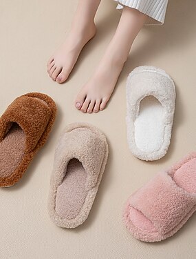 Baumwollpantoffeln für Damen, offene Zehen, einfarbig, flauschig, weich, pelzig, für drinnen, Basic-Stil