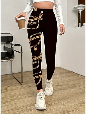 Damen Stoffhosen Leggings Gemütliche Leggings Urlaub Vintage Streetwear Volle Länge Natürliche Taille Grafik Ketten drucken Elastischer Bund Druck Bequem Außenbereich Dehnbar Outdoor Urlaub Streetwear