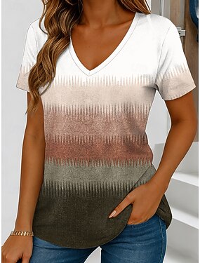 Damen T Shirt Druck Ombre Grafik Gestreift Stilvoll Klassisch Lässig Kurzarm V Ausschnitt Crop Tops Täglich Blau Purpur Braun Grün Sommer Frühling