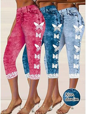 Damen Caprihose Leggings Urlaub Vintage Mode Wadenlang Mittlere Taille Blumen Grafik 3D-Druck Drucken Weich Atmungsaktiv Mikroelastisch Lässig Täglich Urlaub kleiner Finger Hellhimmelblau Dunkel Blau