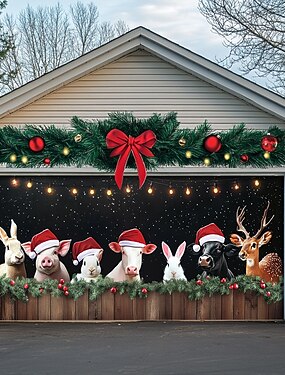 Weihnachtstürdekorationen für den Außenbereich, Garagentorabdeckung, Weihnachtsbanner, Bauernhaustiere, große Weihnachtskulisse für den Urlaub, Garagentorabdeckung für den Außenbereich,