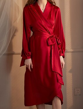 Damen Robe Lässig Weich Satin Einfarbig Schnürung Täglich Heim Bett Langarm V Ausschnitt Schwarz Weiß Champagner Rosa Wein Sommer Frühling Normale Passform Lässiger Schnitt
