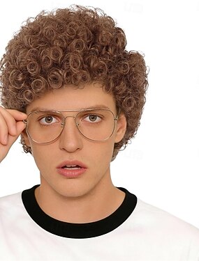 Braune Lockenperücke mit Brille für Herrenkostüme, braune Afro-Lockenperücke, lustige Perücken im Stil der 70er und 80er Jahre für Retro-Cosplay