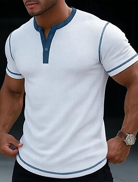 Herren Waffel-Henley-Hemd T-Shirt Kurzarm Einfarbig Lässig Knöpfe Henley Outdoor Lässig Täglich Sommer Schwarz Weiß Gelb Henley T-Shirt