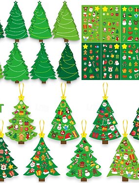 72-teiliges Weihnachtsbaum-Bastelset zum Selbermachen – erstellen Sie Ihre eigenen Weihnachtskarten mit Aufklebern. Enthält 24 Karten, 24 Aufkleberbögen und 24 goldene Bänder, perfekt für
