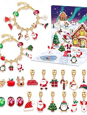 Adventskalender Füllartikel Weihnachtsgeschenk für Kinder Teenager Frauen mit 24 Tagen 2025 Armbänder Weihnachts Countdown Kalender 24 Stk DIY Charm Schmuck Herstellung Set