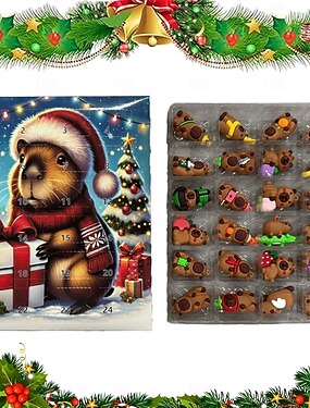 Capybara-Adventskalender 2025, 24-tägiger Weihnachts-Adventskalender mit 24 Capybara-Ornamenten, 3D-Sammel-Capybara-Ornamenten, Weihnachtsdeko, süße Capybara-Statue-Geschenkbox