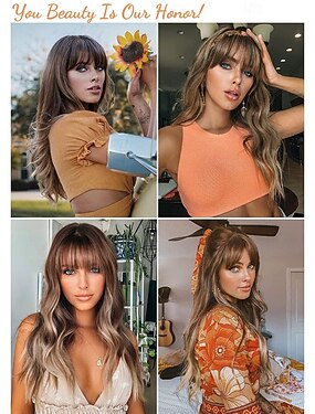 Hellbraune Perücke mit Pony, lange, gewellte Ombre-Perücken für weiße Frauen, aschweißes, hitzebeständiges Kunsthaar, die besten natürlichen Perücken für Halloween/Weihnachten/Cosplay/Party