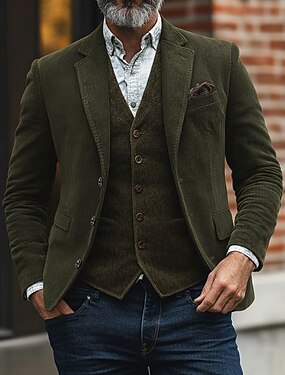 Herren Cordjacke Notch-Kragen Mode Klassisch Lässig Einfarbig Blazer Schwarz Braun Grün Figurbetonter Schnitt Einreiher mit drei Knöpfen