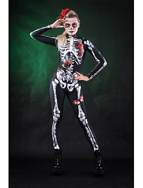 Bodysuit Ganzkörper-Catsuit Totenkopf Zuckerschädel Gruseliges Kostüm Kinder Erwachsene Herren Damen Jungen Halloween Karneval Tag der Toten Club Party Leistung Verkleiden