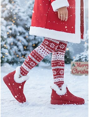 Rote, mit Fell gefütterte Schneestiefel für Damen – warme und gemütliche Winterstiefel für Damen – ideal für Weihnachten, verschneite Tage und Urlaubsreisen