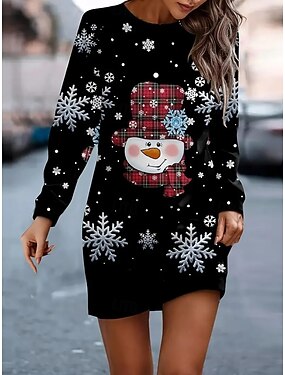 Mädchen' 3D Weihnachtsmann Schneemann Schneeflocke Weihnachtsoutfit Kleid Schneeflockenkleid Langarm 3D-Druck Herbst Winter Urlaub Sport & Natur Täglich Kuschelig Brautkleider schlicht Schön